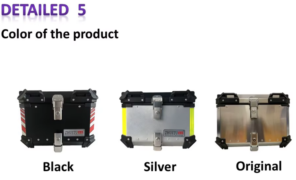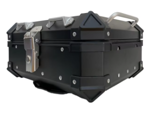 Motocicleta Top Boxes de alumínio Cauda, preta traseira