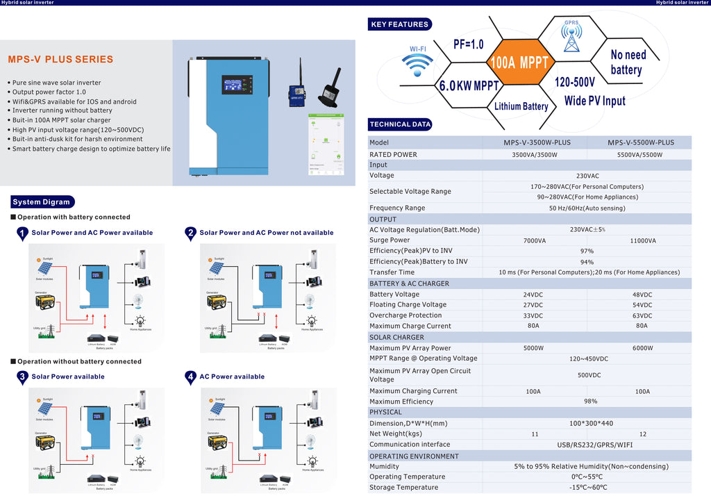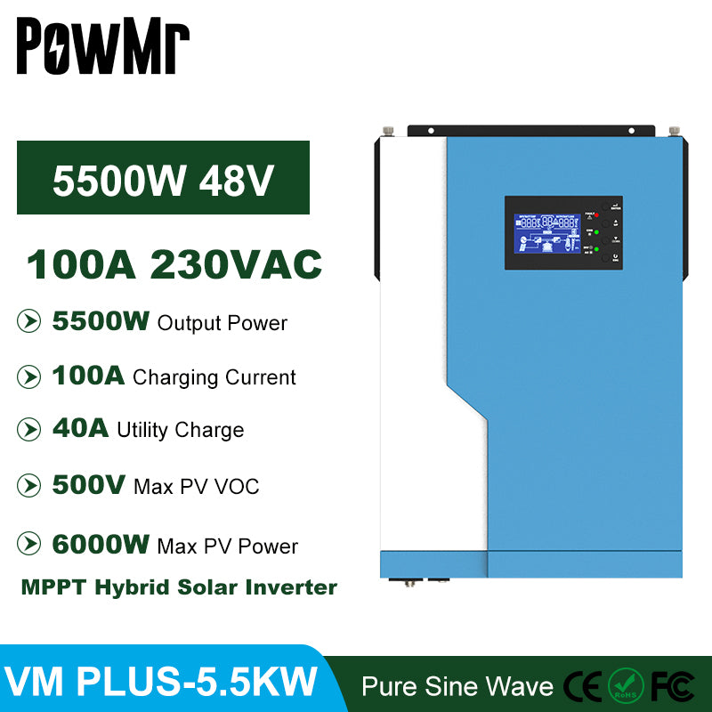 Inversor solar DC/AC Powmr 3.5kw 5.5kw híbrido solar, 48V embutido mppt 100A wifi