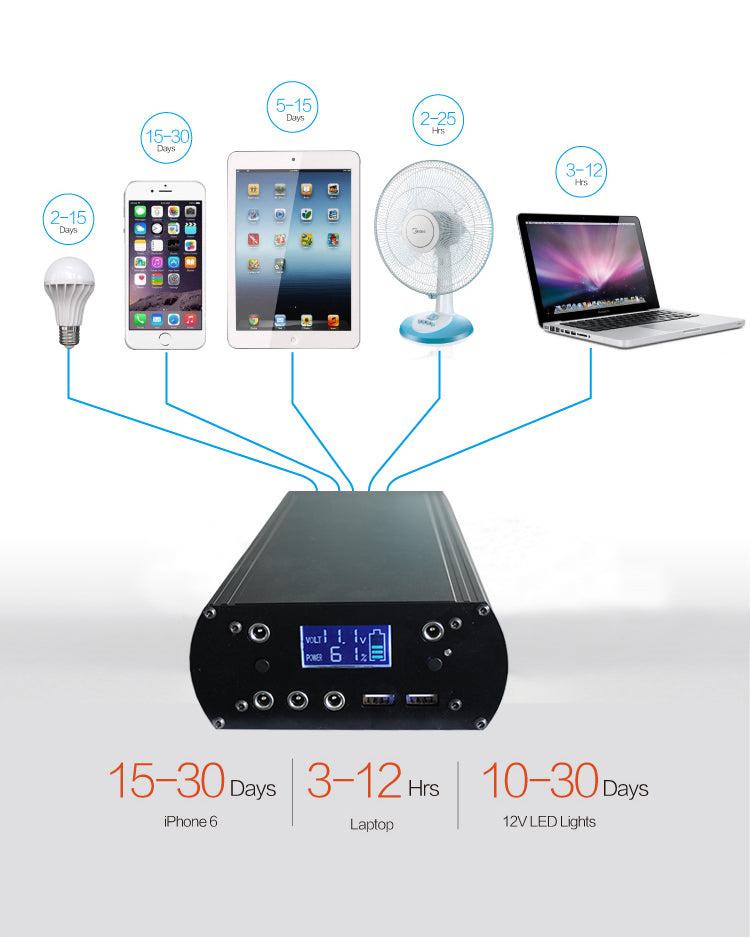 Sistema de bateria de lítio solar 200ah, AC110V~240V, Laptop/telefone celular/luz