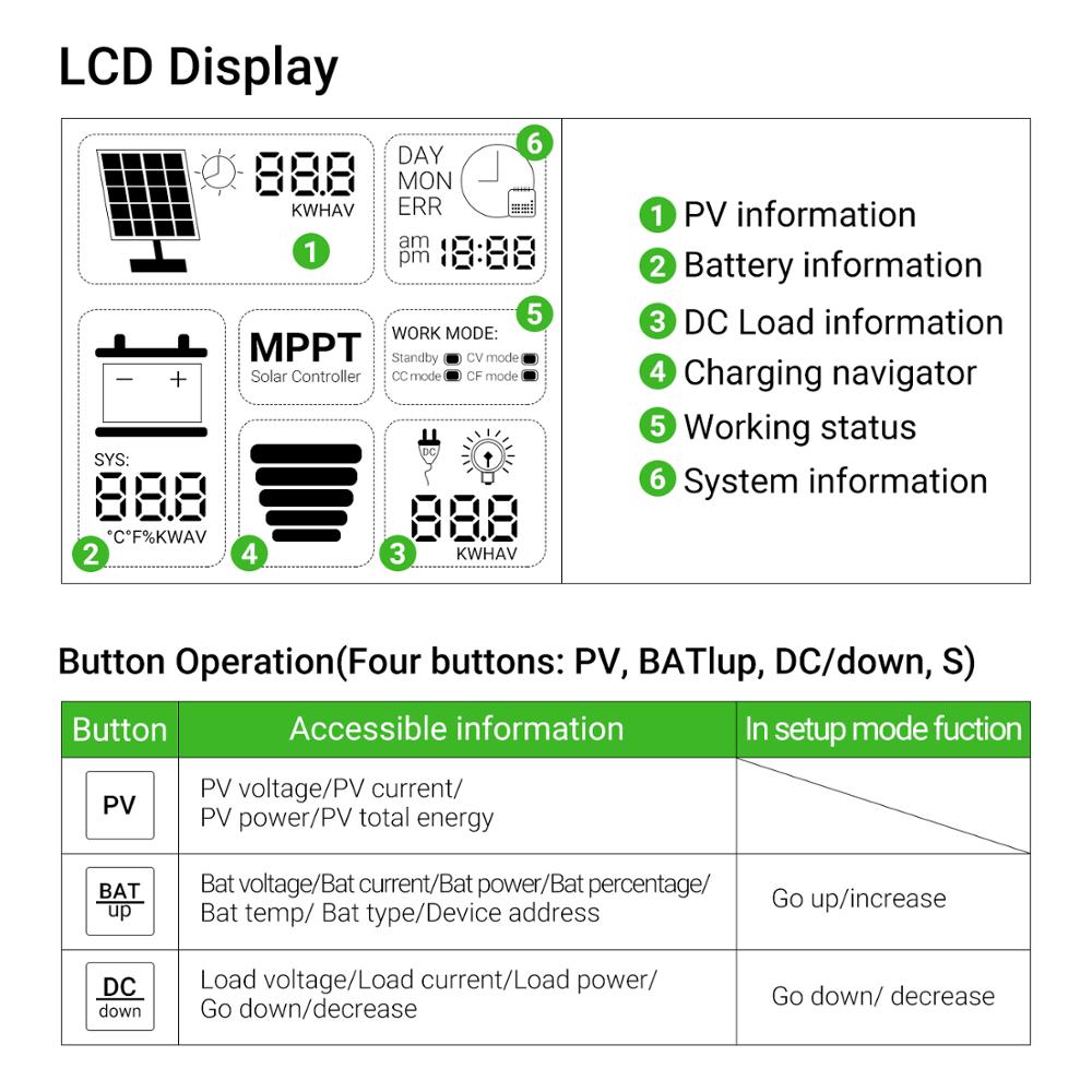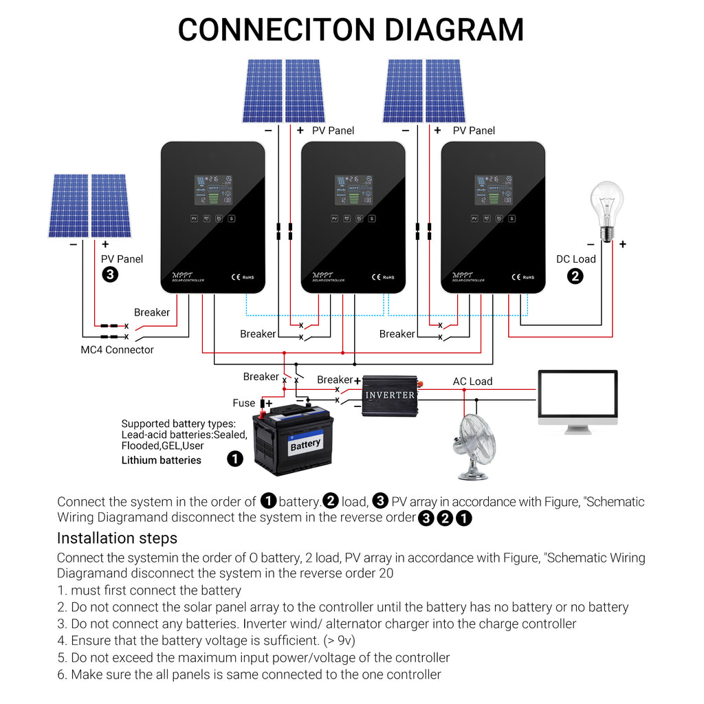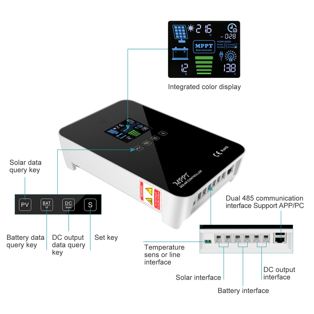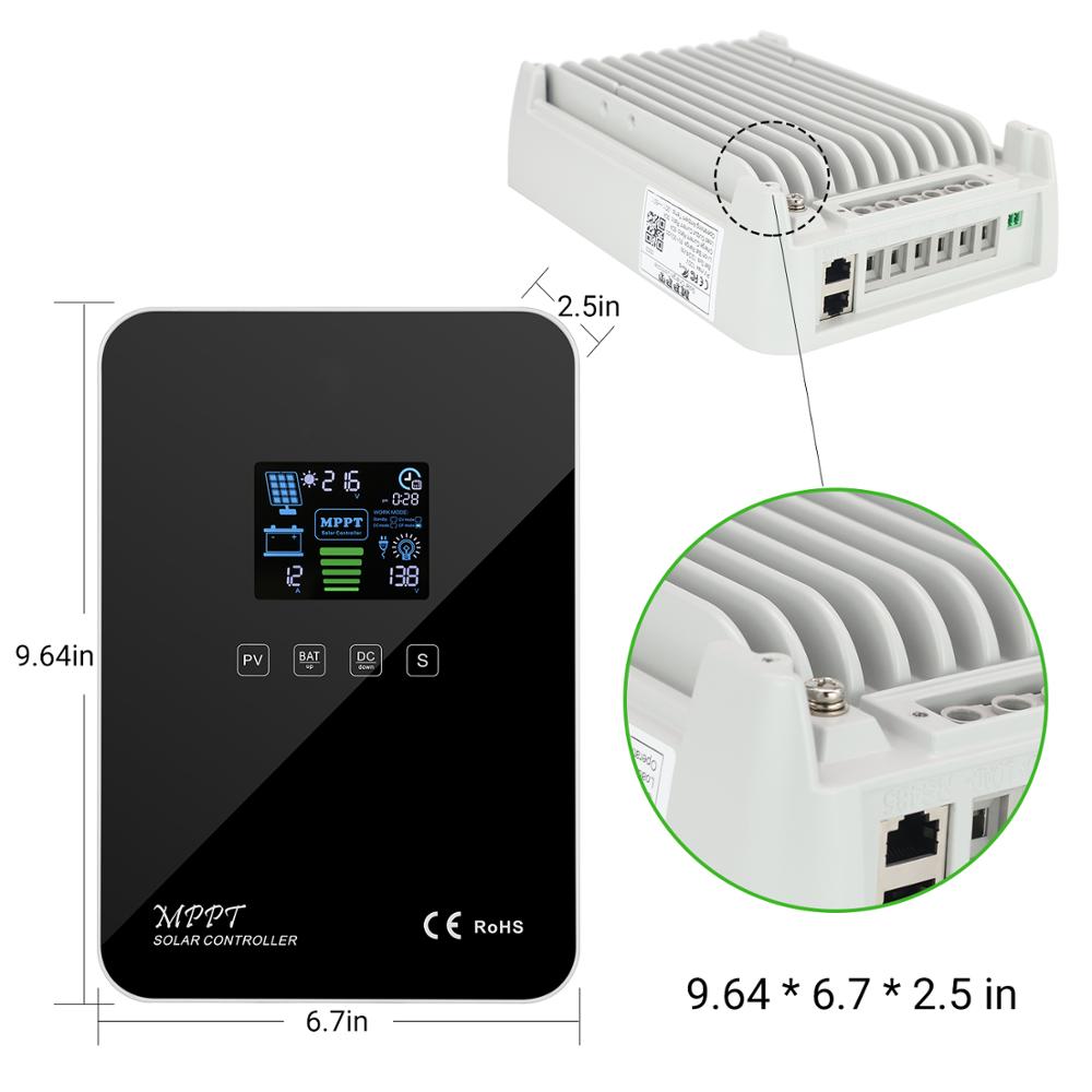 Controlador solar MPPT 60A -12V 24V carregar baterias de íon de lítio Tela sensível Wifi