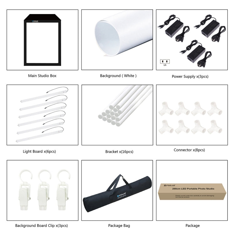 Kit Soft Box com 6 lâmpadas de LED PULUZ para fotografia, fundo infinito Dobrável Portátil 2m Flash Light Regulável SMD