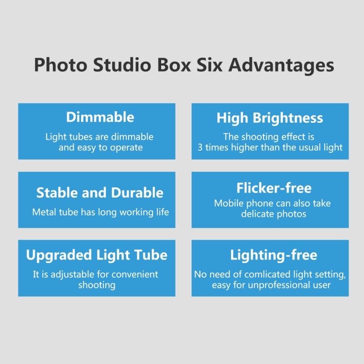 1. 6 tiras de barra de luz LED com 78 contas de LED e 40W para cada tira (total de 468pcs contas de LED, 240W), oferece fonte de luz adequada para fotos com fundo branco.