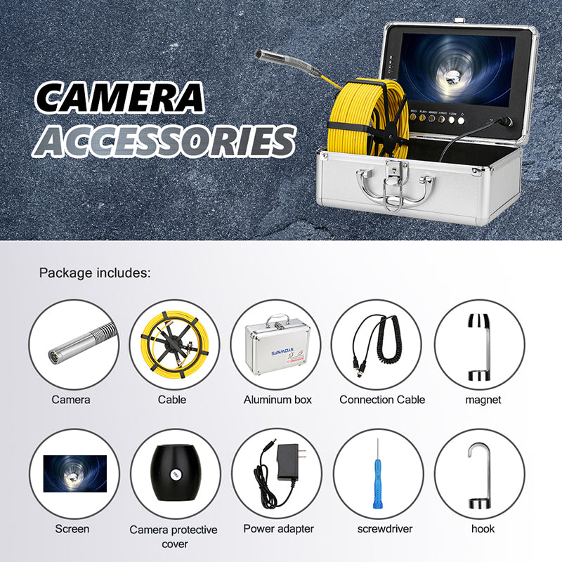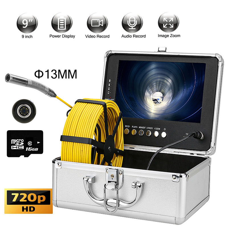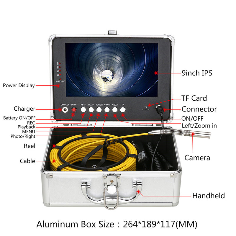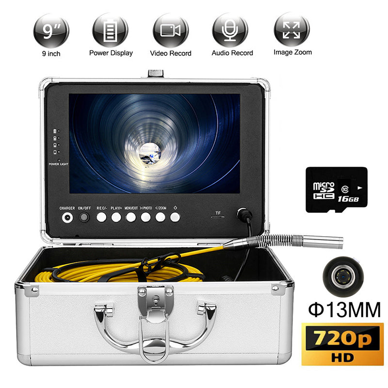 Monitor IPS 9", Tubulação Esgoto Dreno Câmera Endoscópio Vídeo Subaquático 10M 20M 30M