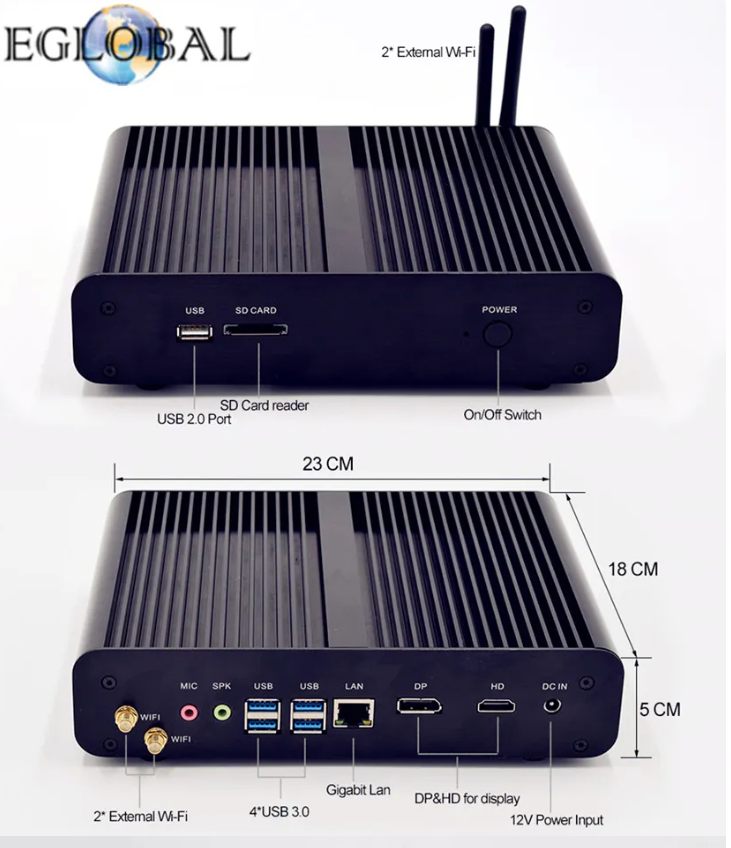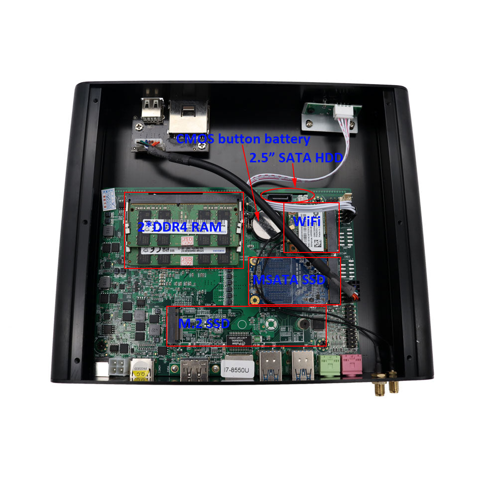 PC industrial Fanless Intel I7 8550U, DDR4, DP, HD, LAN, Leitor SD, SPK, MIC