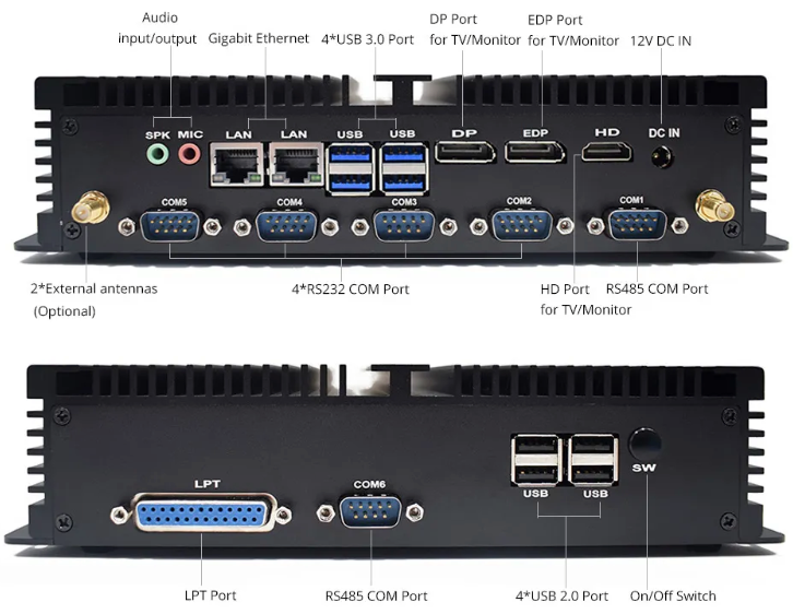 Mini PC Industrial i7 8550u Fanless, DDR4, SSD+HDD, Video 8GB