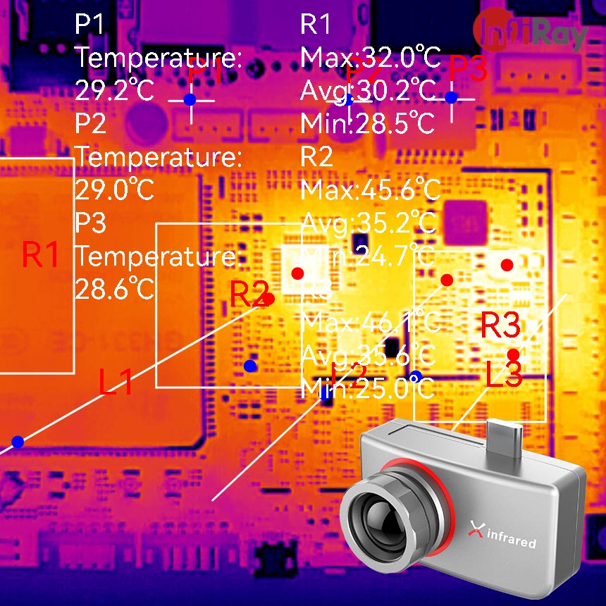 Tanto o T3pro quanto o T3S têm uma resolução de 384×288. Para engenheiros profissionais, o T3pro e o T3S podem fornecer imagens térmicas claras com detalhes ricos e ajudá-los a melhorar a eficiência de detecção. A câmera térmica para smartphone também pode melhorar a segurança no trabalho. A faixa de medição de temperatura do T3pro é de até 400 ℃, o que pode atender às demandas da maioria das aplicações industriais. A câmera térmica para smartphone não apenas tem a mesma função das câmeras térmicas portáteis, mas também é muito mais barata e conveniente.