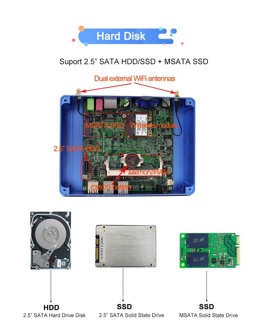1 x SATA3.0 slot for SATA HDD or SSD, support 6Gb/s