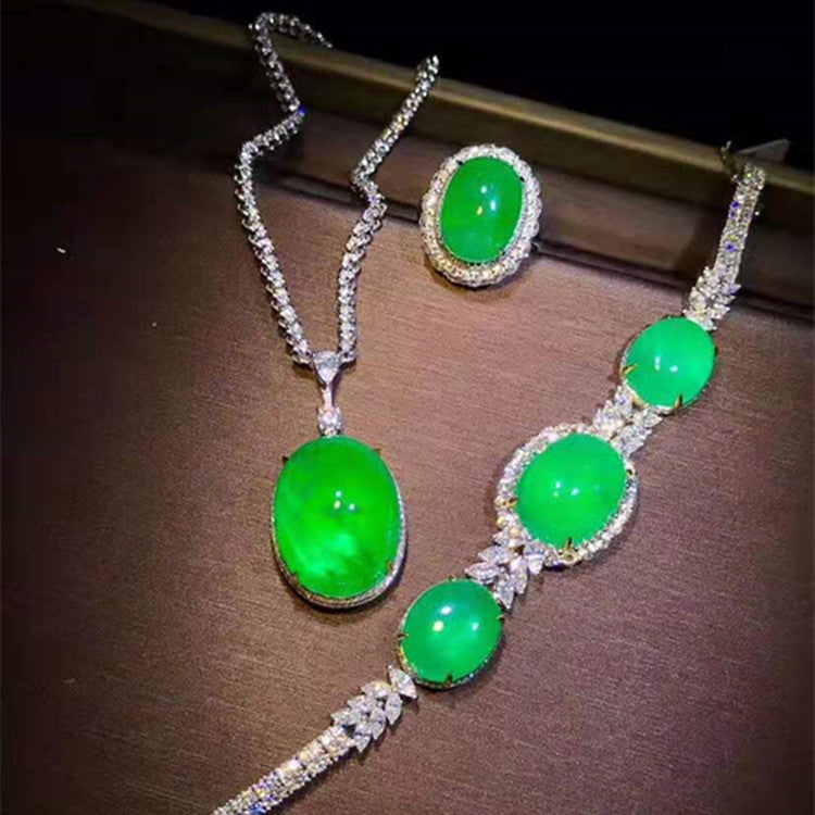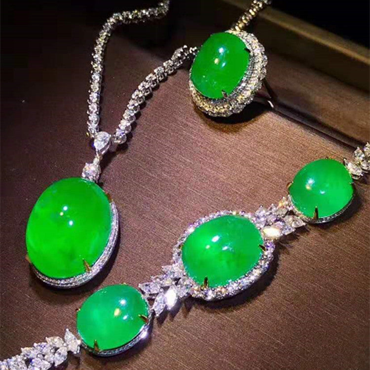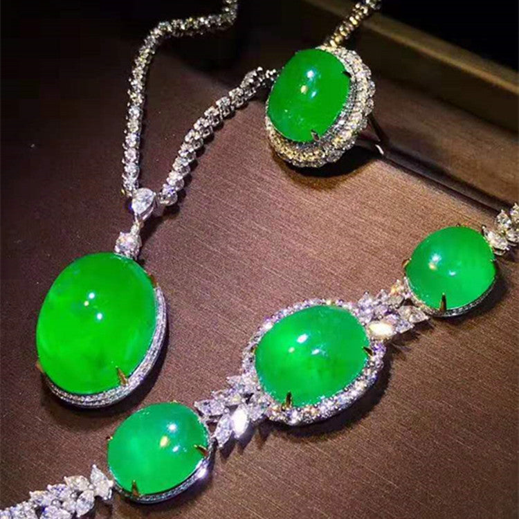 Colar com pingente esmeralda 38cts natural, diamantes 5.65ct e ouro branco 18k