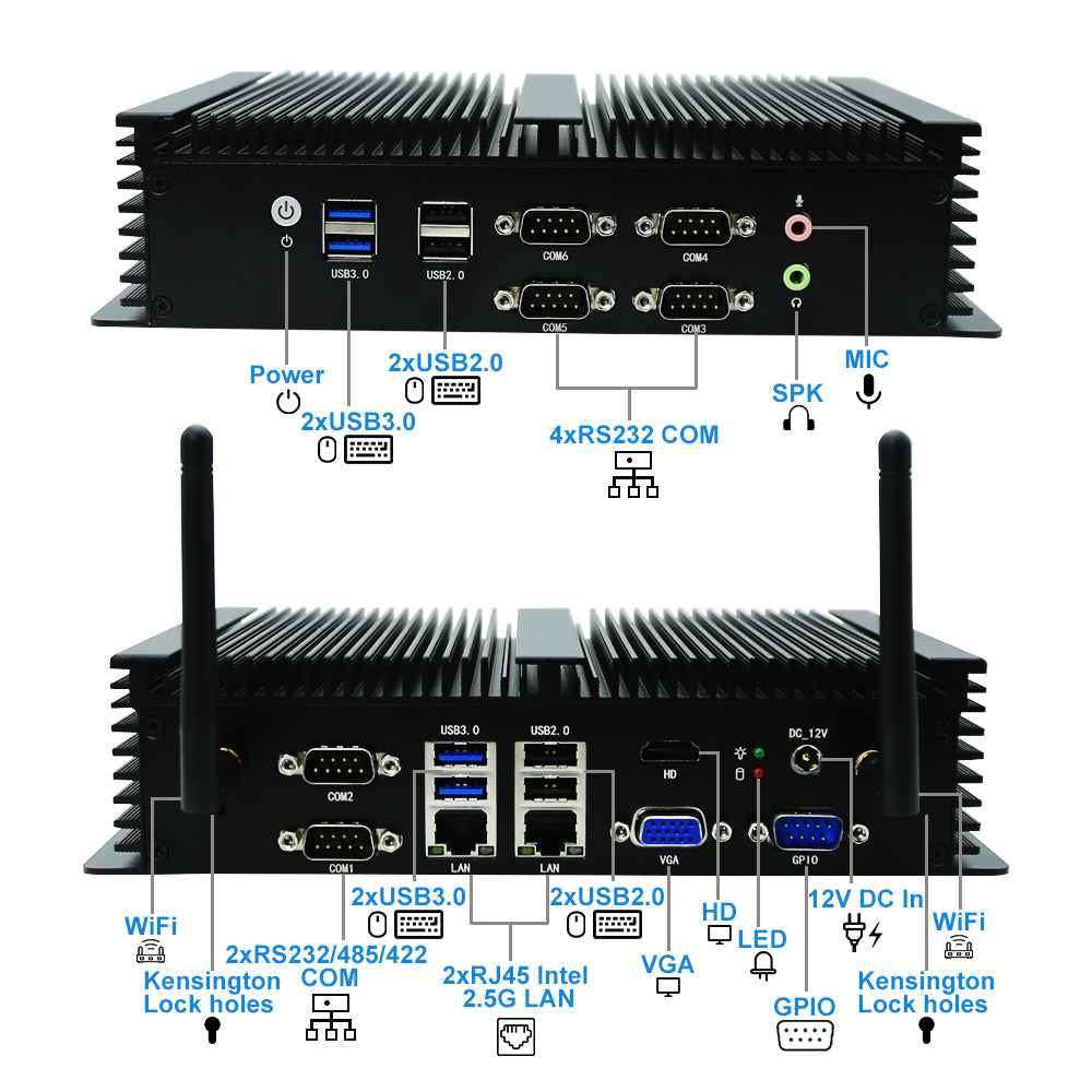 Mini PC Industrial Fanless Intel i7-4578U 4GB/8GB/16GB