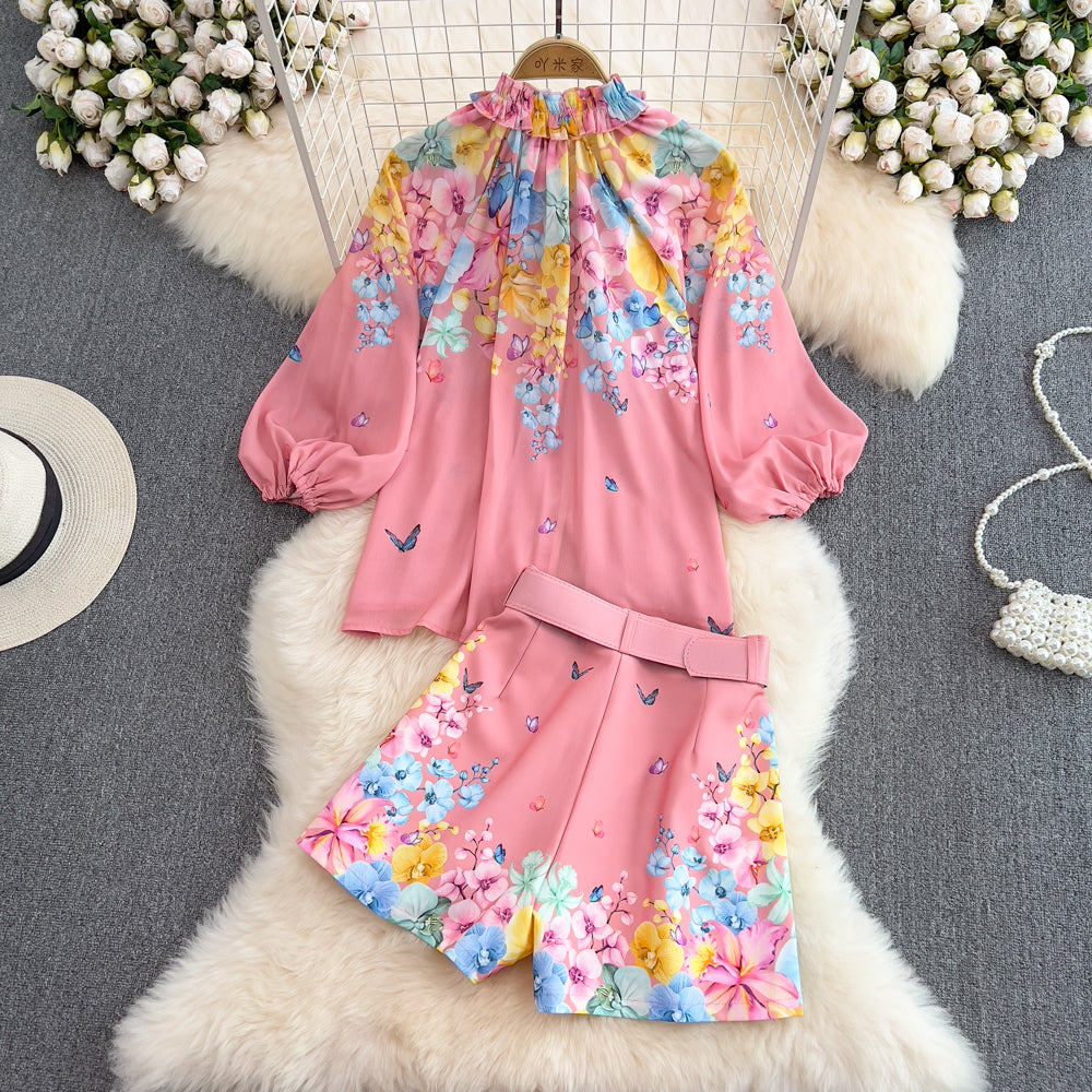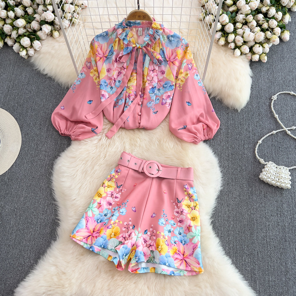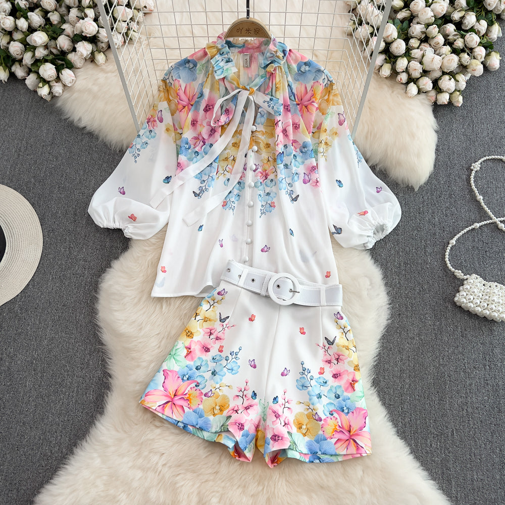 Lindo conjunto super delicado, camisa de mangas fofas e short com cinto.