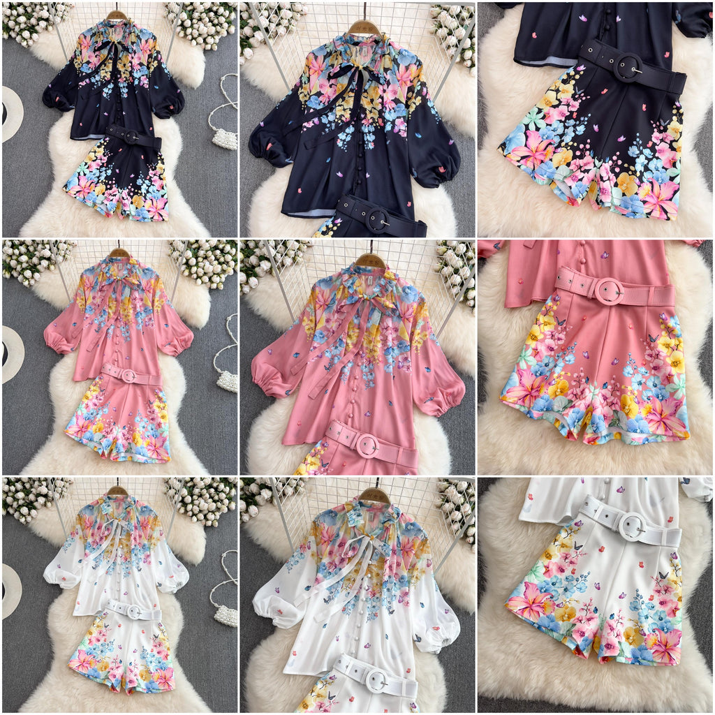 A escolha perfeita para você brilhar, deito com mistura de algodão e poliester este conjunto é confortável, durável e fácil de cuidar. A camisa aprsenta um designer com muito estilo, com mangas compridas e soltas enquanto o shorts com cinto da o charme total.