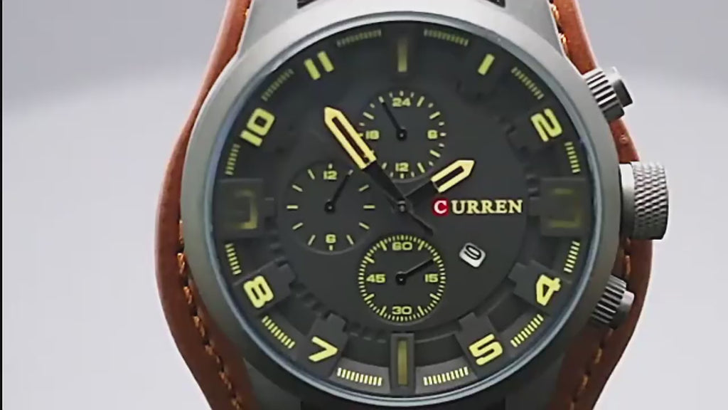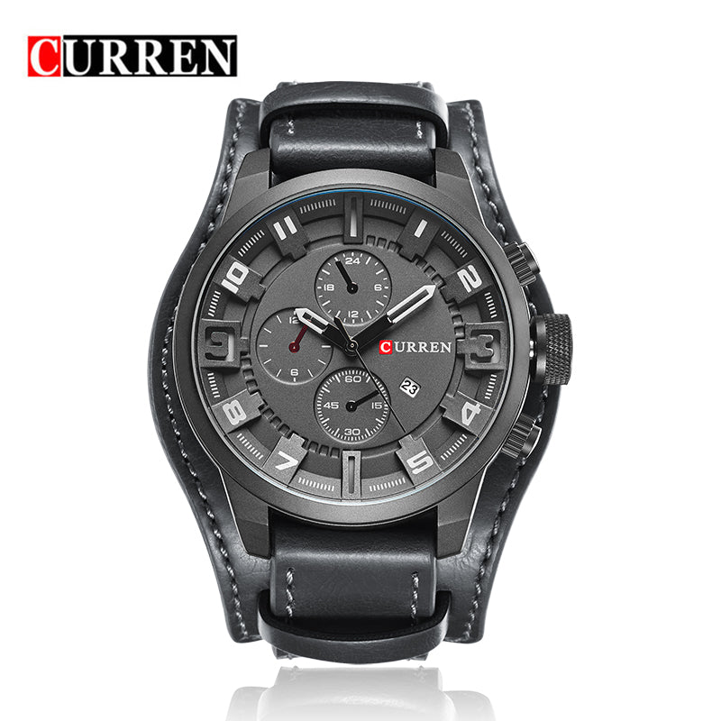 Relógio masculino de luxo pulseira de couro militar de pulso de quartzo