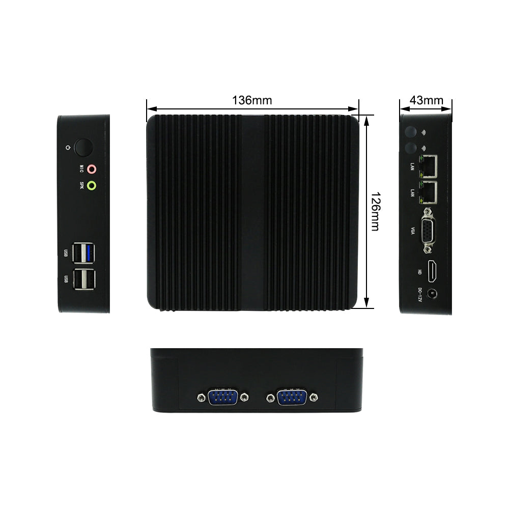 PC Industrial Fanless Intel J1900 Win10, 4G/8G/ Win7/Win8/Win10
