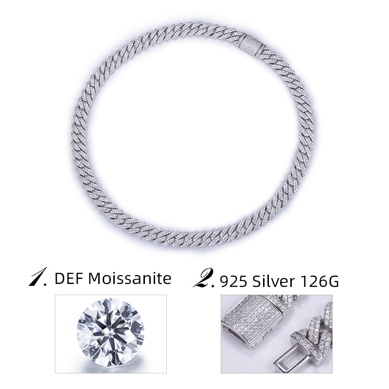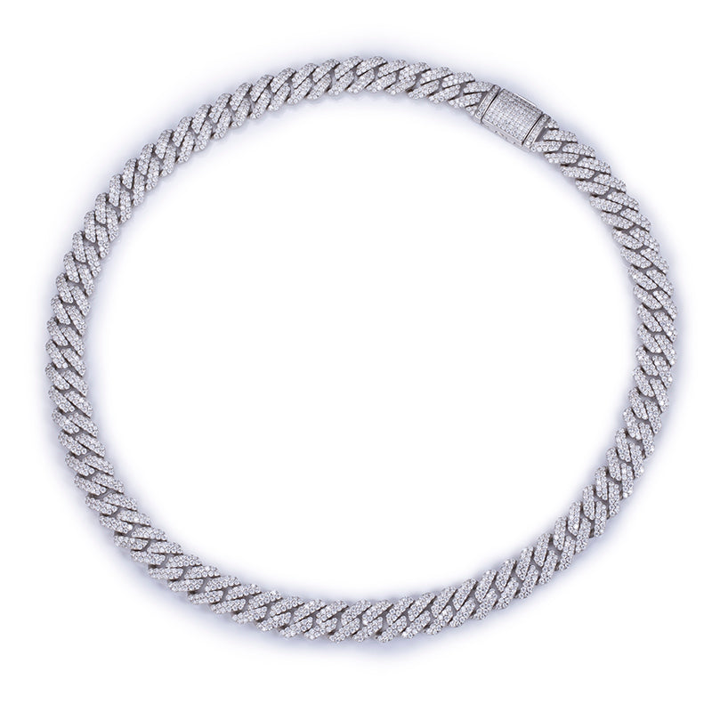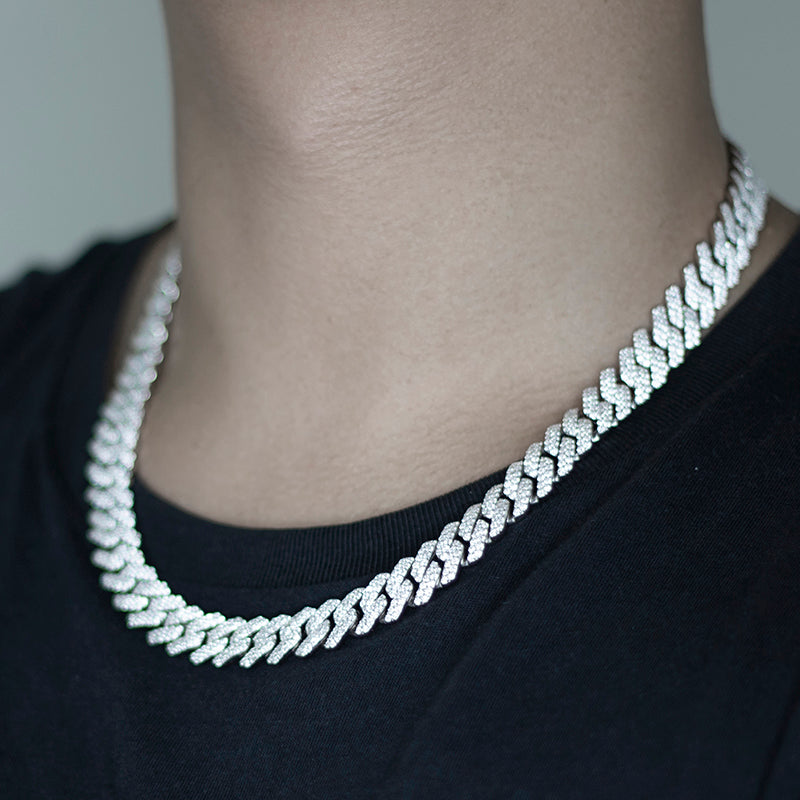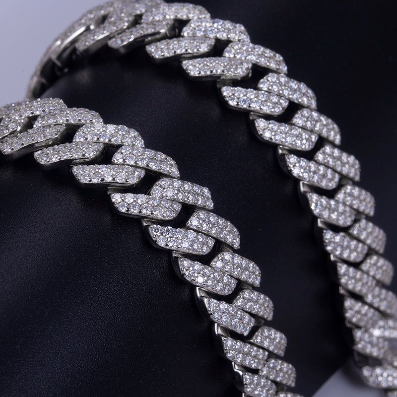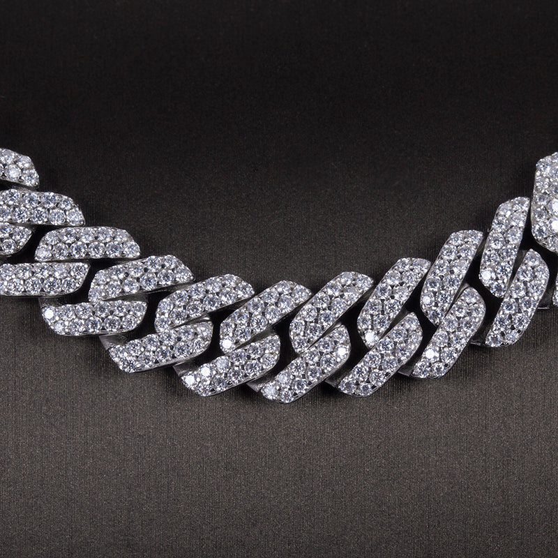 Jóias Hip Hop Colar cubano de prata 12mm Moissanita Corrente de elos cubano