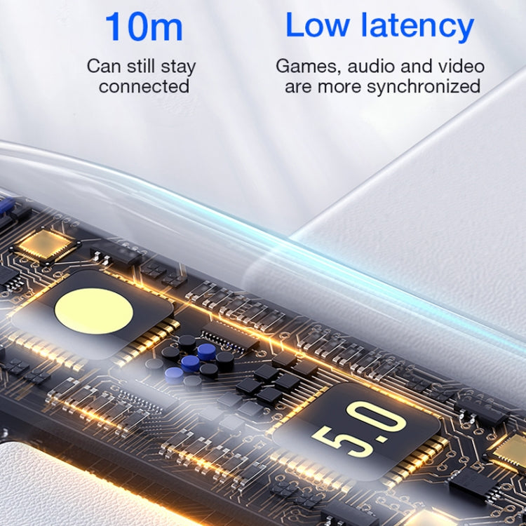 1. Versão sem fio: 5.0 2. Distância de comunicação: 10 metros 3. Tempo de carregamento: 1,5 horas 4. Capacidade da bateria do compartimento de carregamento: 250mAh, capacidade da bateria do fone de ouvido: 30mAh 5. Teclas de toque, fáceis de operar 6. Design ergonômico, confortável de usar 7. Tamanho pequeno, fácil de transportar 8. Bobina dinâmica grande de 13 mm, membrana timpânica de vibração dupla 9. Compatível com dispositivos sem fio habilitados