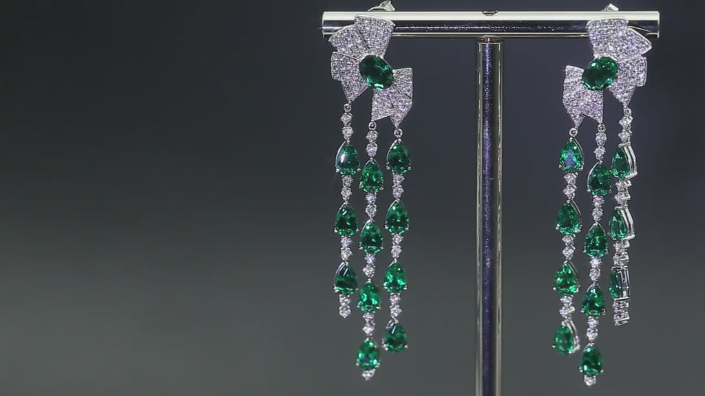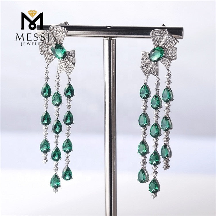 Brinco com esmeralda em formato de lágrima, joias de luxo com esmeralda e casamento