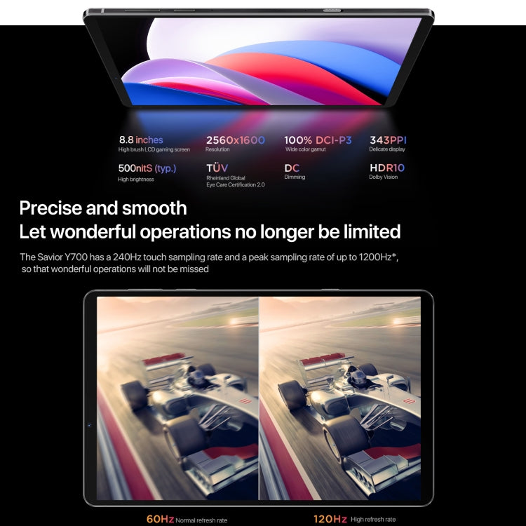 4. 8.8 inch LCD screen, 120Hz refresh rate, 2560x1600 resolution.