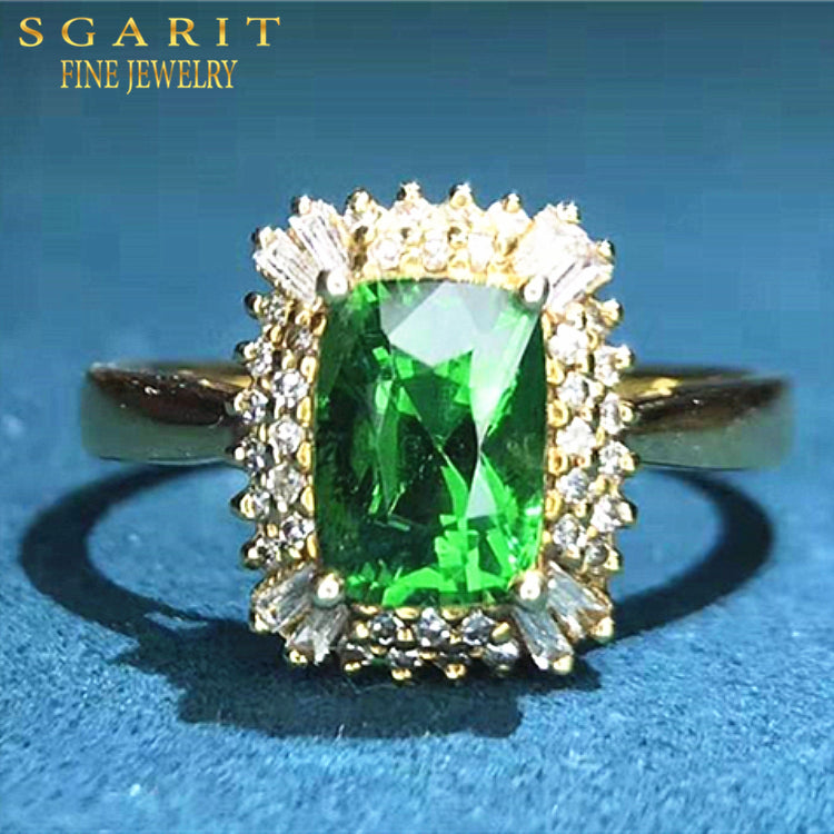Anel estilo vintage de noivado, joia feminina de 1,6ct natural de pedra preciosa tsavo, ouro 18k